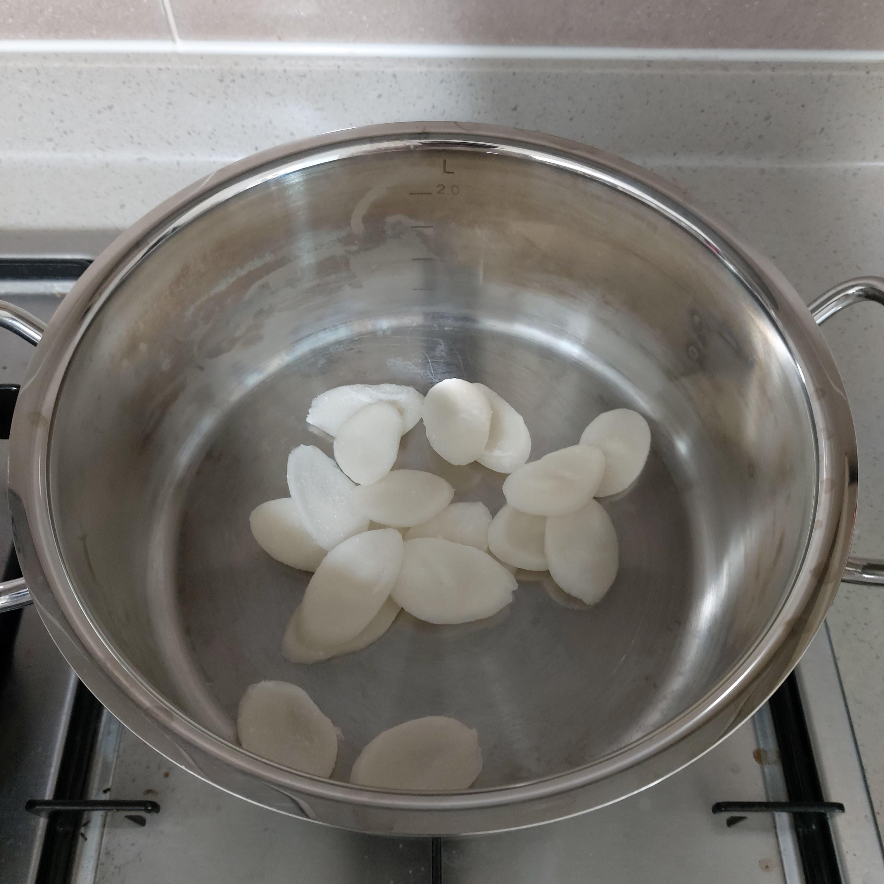 *요리할 때 요리하는 공간에 재료가 적을수록 편합니다. 부대찌개는 재료를 모두 넣고 끓여도 되기 때문에 떡 먼저 넣습니다.