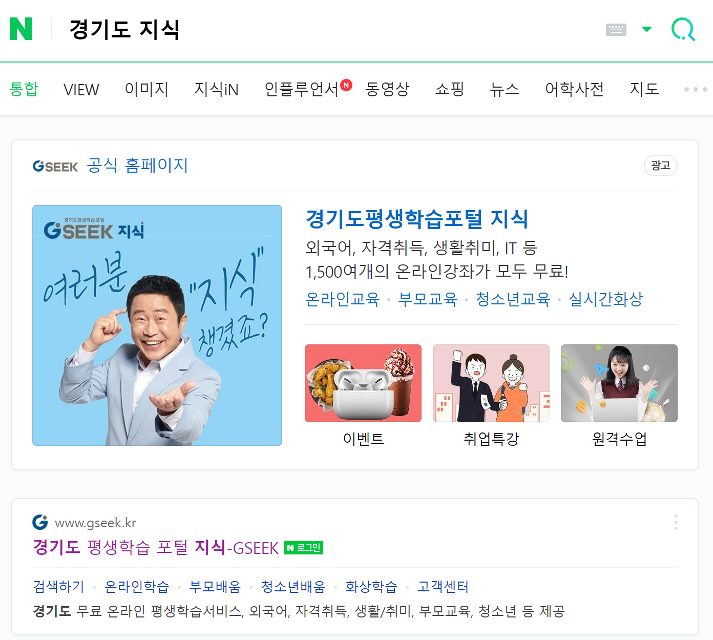네이버에 "경기도 지식" 이라고 검색!