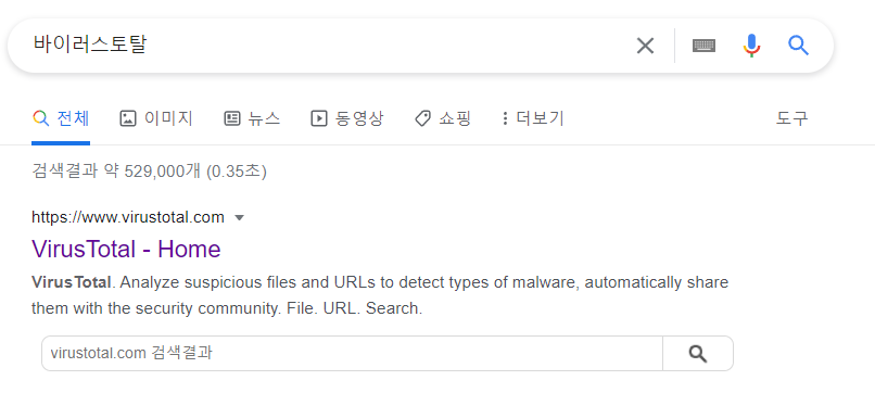 구글에 바이러스 토탈이라고 검색하면, 바로 쉽게 사이트를 확인하실 수 있습니다.