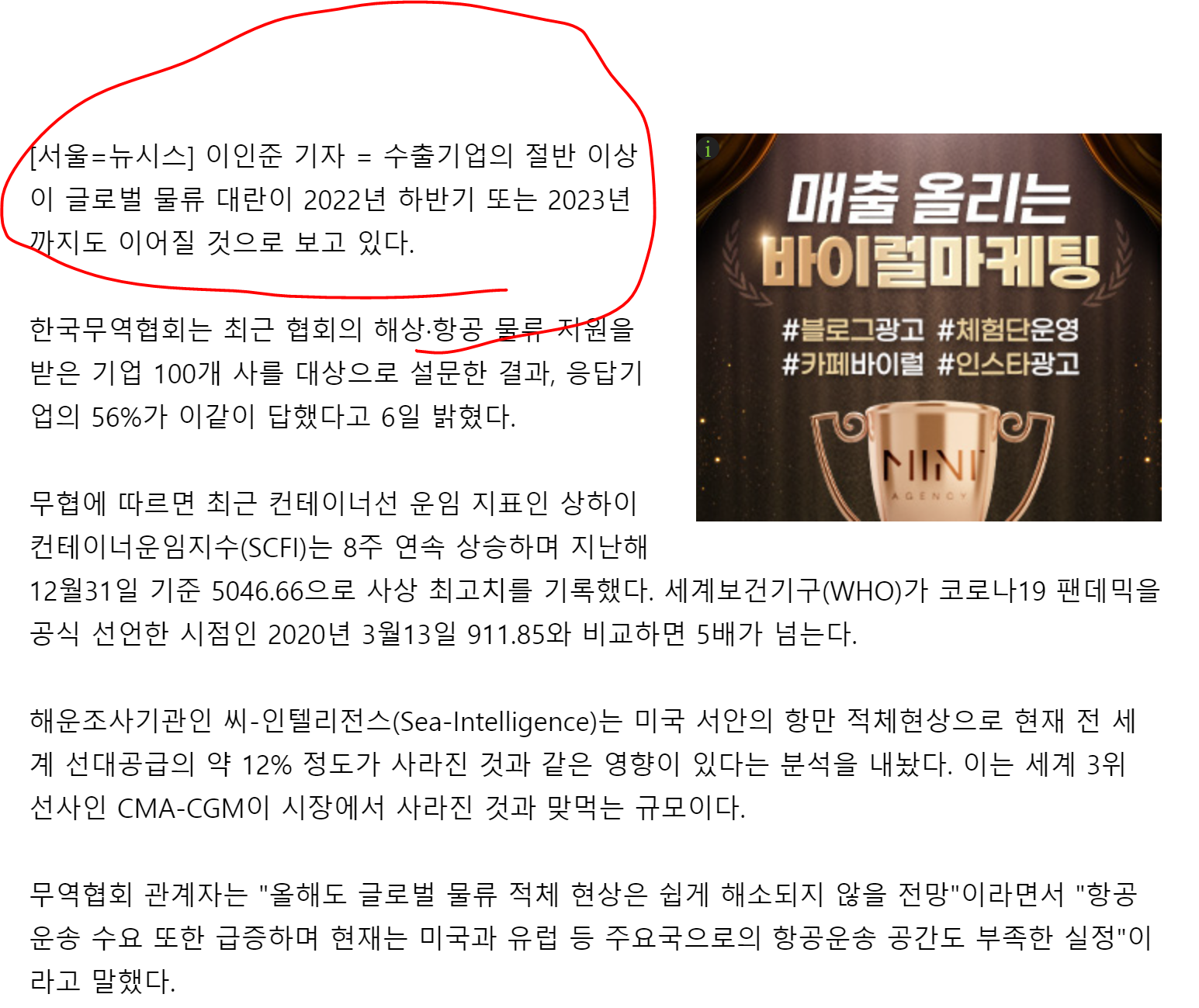 한 기사에 따르면, 물류대란이 2022년 또는 2023년까지도 이어질 수 있다고 업계 절반에서 예상한다고 합니다. 그렇다면 물류에 관한 수요와 해결 필요성에 대한 것이 대두되는 상황입니다. 이에 글로벌 기업 아마존과 여러 대기업에서도 적극적으로 물류 사업을 진행하고 있습니다.