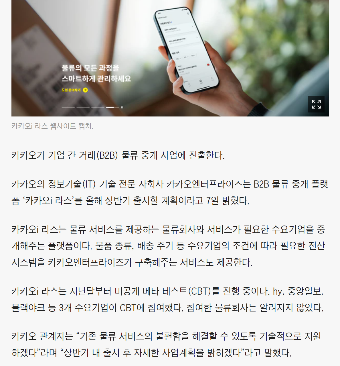 카카오 B2B 물류 중개 사업 진출