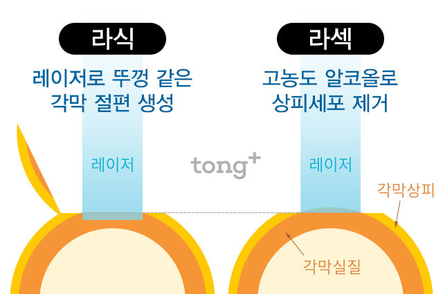 이 정도 수준으로 이해하고, 라식은 눈 뚜껑(각막)을 한 꺼풀 열어서 각막을 깎고 다시 덮으니까, 한번 자른걸 본드로 붙이면 원래 붙어있던 거보다 접착력이 약하듯이 고강도 운동을 하게 되면 각막 뚜껑이 벗겨질 수도 있는 위험이 있다고 합니다. 라섹은 레이저로 지져서 하기 때문에 라식은 살면서 한 번밖에 못하지만 라섹은 두 번까지도 할 수 있다고 합니다. 이렇게만 들으면 무조건 라섹을 하는 게 이득이라고 생각하게 됩니다. 하지만 수술을 하고 주변에 라식한 사람이나 라섹한 사람이나 스마일 라식한 사람이나 크게 차이 없는 거 같습니다.