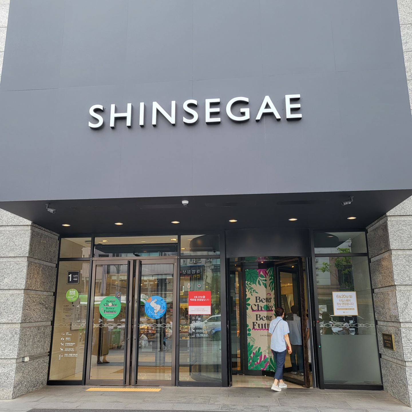 우선 신세계 백화점의 1번 게이트로 가셔야 합니다. 무작정 지도만 보고 밖에 나와서 찾는 것보다 백화점 내부에서 1번 게이트 찾는 게 좋은 거 같습니다. 그렇게 1번 게이트까지 나오셨으면 주변에 노점상들과 몇 가지 상가가 보이는데 노란 간판으로 우리를 반기고 있는 백화점 상품권 구매하는 상가가 보입니다.