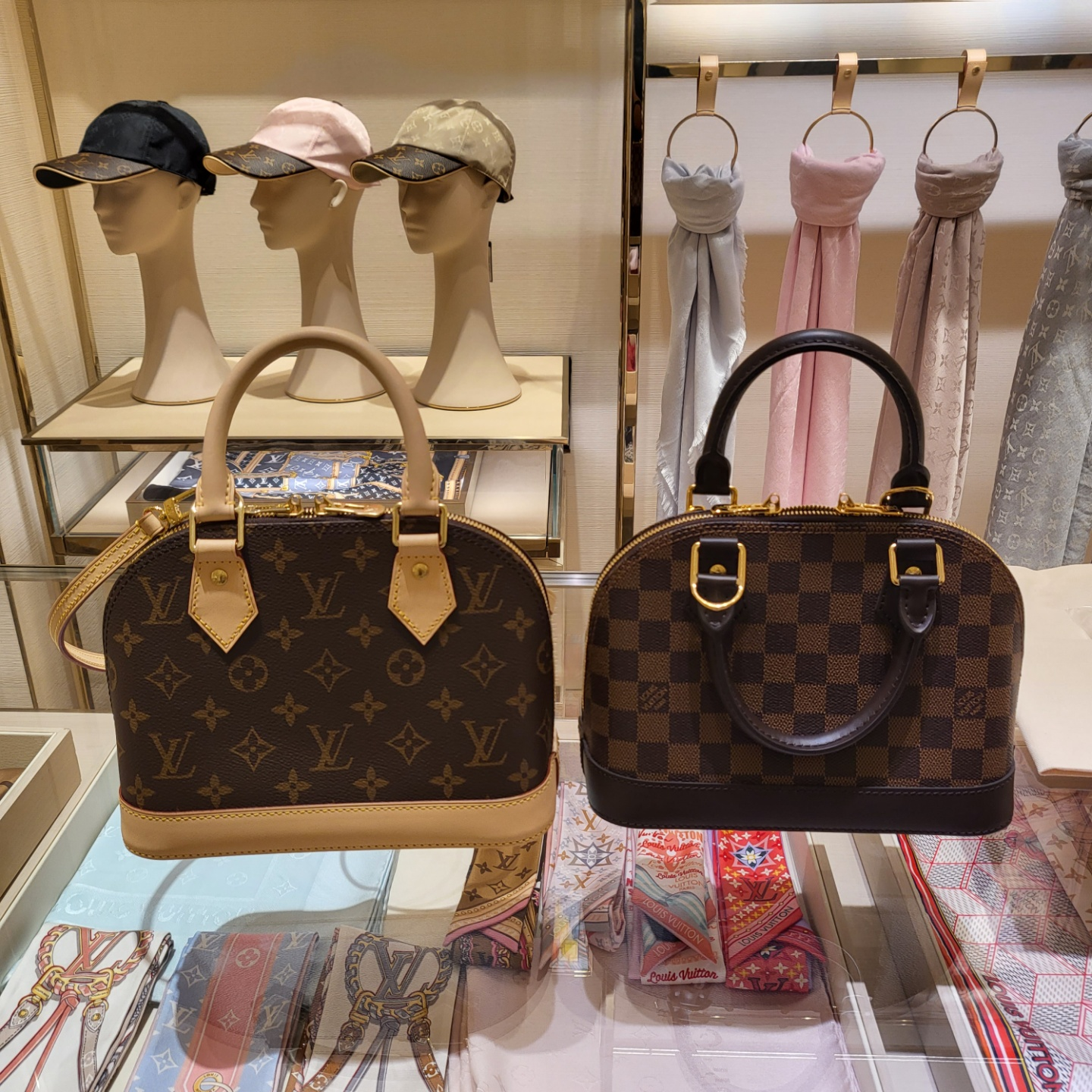 아마 이 글을 보시는 분들도 같은 고민을 온라인으로 먼저 하고 계시지 않을까 싶습니다. 저는 와이프 가방 사러 간 거라서 미리 고민 안 해봤는데 루이비통 매장에서 막상 보니, 저라도 고민이 될 거 같았습니다. 왜냐하면 밝은 색이 눈에도 확 들어오고 이쁘긴 한데 길가다가 너무 많은 형제자매님 같이 많이 보이고 차를 살 때 고민하는 거처럼, 흰색 차 검은색 차 어떤 게 더 관리가 쉬울 것인가. 어려울 것인가. 하는 고민과 같았습니다. 아무리 봐도 눈에는 그냥 알마bb가 들어왔지만 결국에는 루이비통 알마bb 다미에 패턴을 골랐습니다.