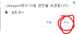 그래서 계속해서 이것저것 눌러보면서 찾아가다 보면, 크롬에서 친절하게 계속 팝업을 띄워줍니다. 해당 사이트에서 어떤 알림을 보내려고 한다는 팝업을 띄워줍니다. 모두 Block 또는 차단을 눌러 보안사고를 예방하면서 진행합니다. 이 정도만 해도 어느 정도 보안은 유지가 됩니다. 컴퓨터를 잘 모르는 사람들은 뭔지도 모르고 막 버튼을 누르기 때문에 꼭 이 내용도 참고하시길 바랍니다. 주변에 컴맹이 있다면, 이 글을 공유해서 같이 나눠보면 좋겠습니다.