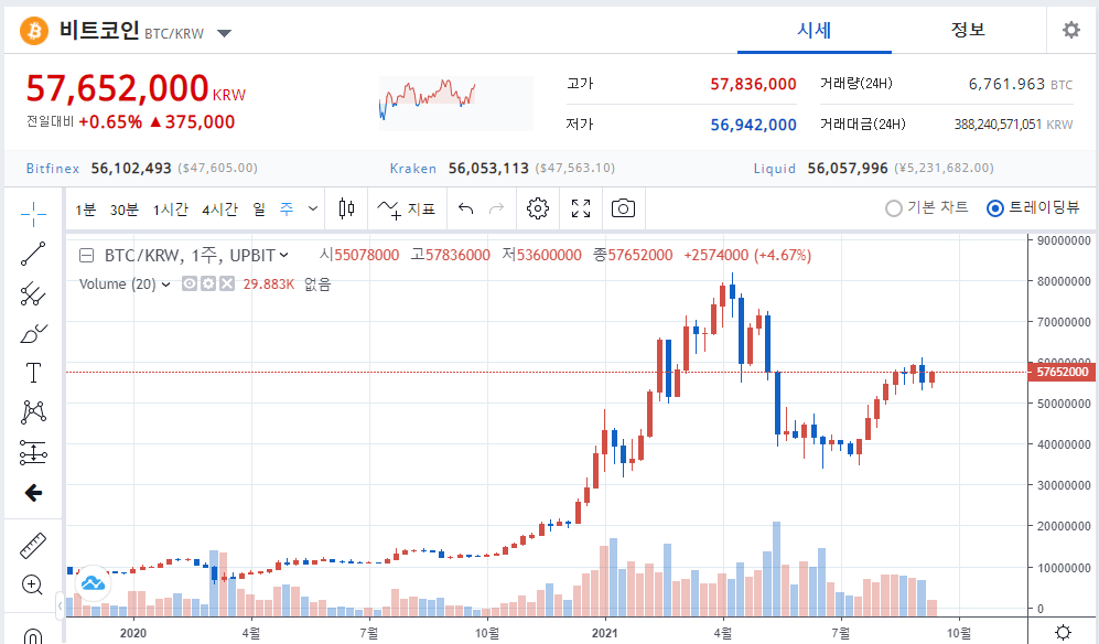 21.09.18 현재 비트코인 시세는 5천 6백만원 정도입니다.