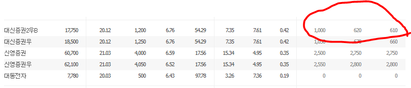 배당수익률 상위종목 더보기를 클릭하면 더 많은 배당주의 정보가 나옵니다. 많은 정보들 중에서도 어떤 정보를 봐야 배당주에 투자하여 안정적인 수익을 볼 수 있을지, 주목해서 봐야 할 항목들에 대해 설명하겠습니다.