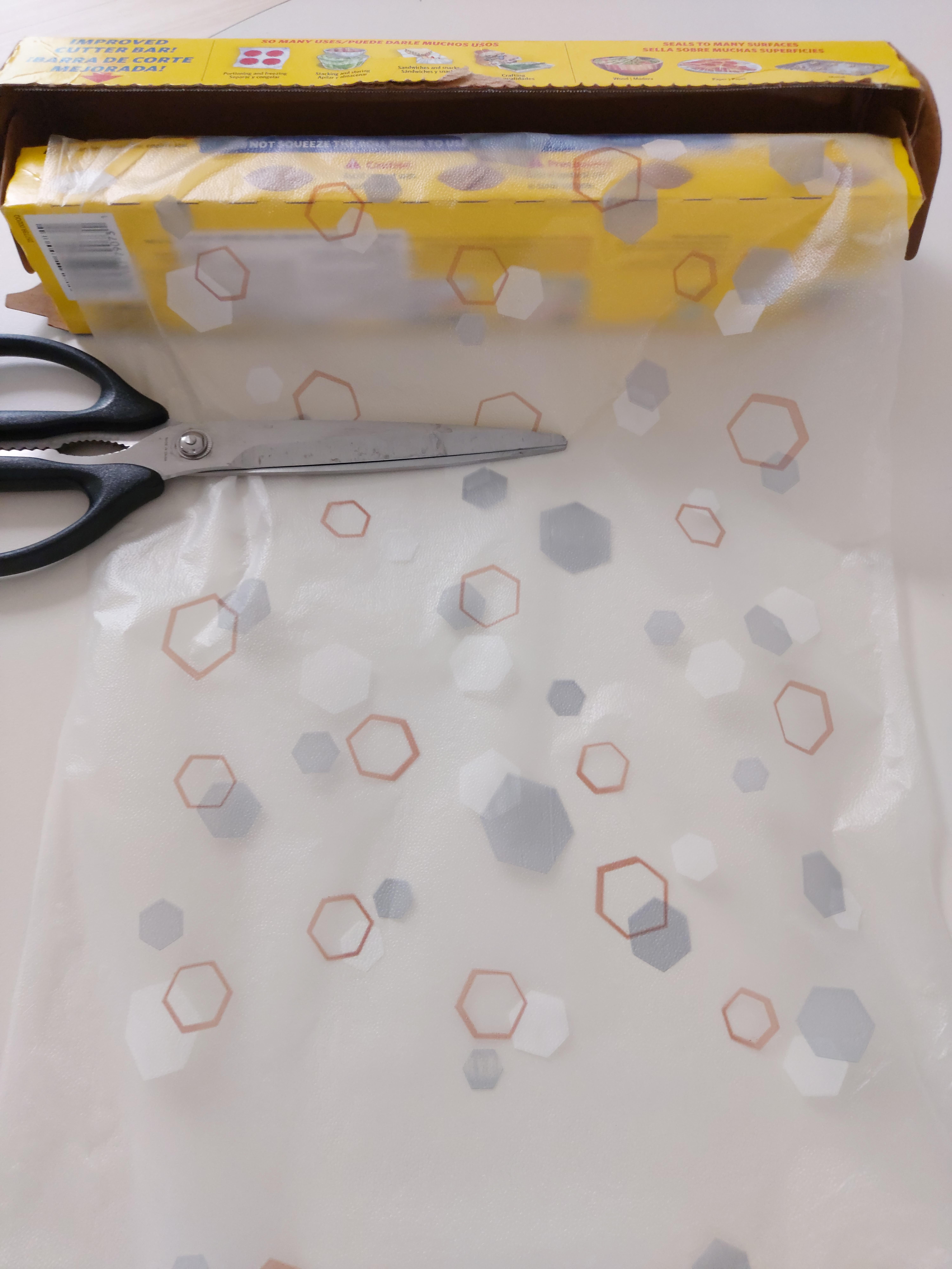 고기 길이의 2배보다 살짝 길게 매직 랩을 꺼내고 가위로 자른 후, 매직 랩 위에 올려져 있는 고기를 덮어줍니다.