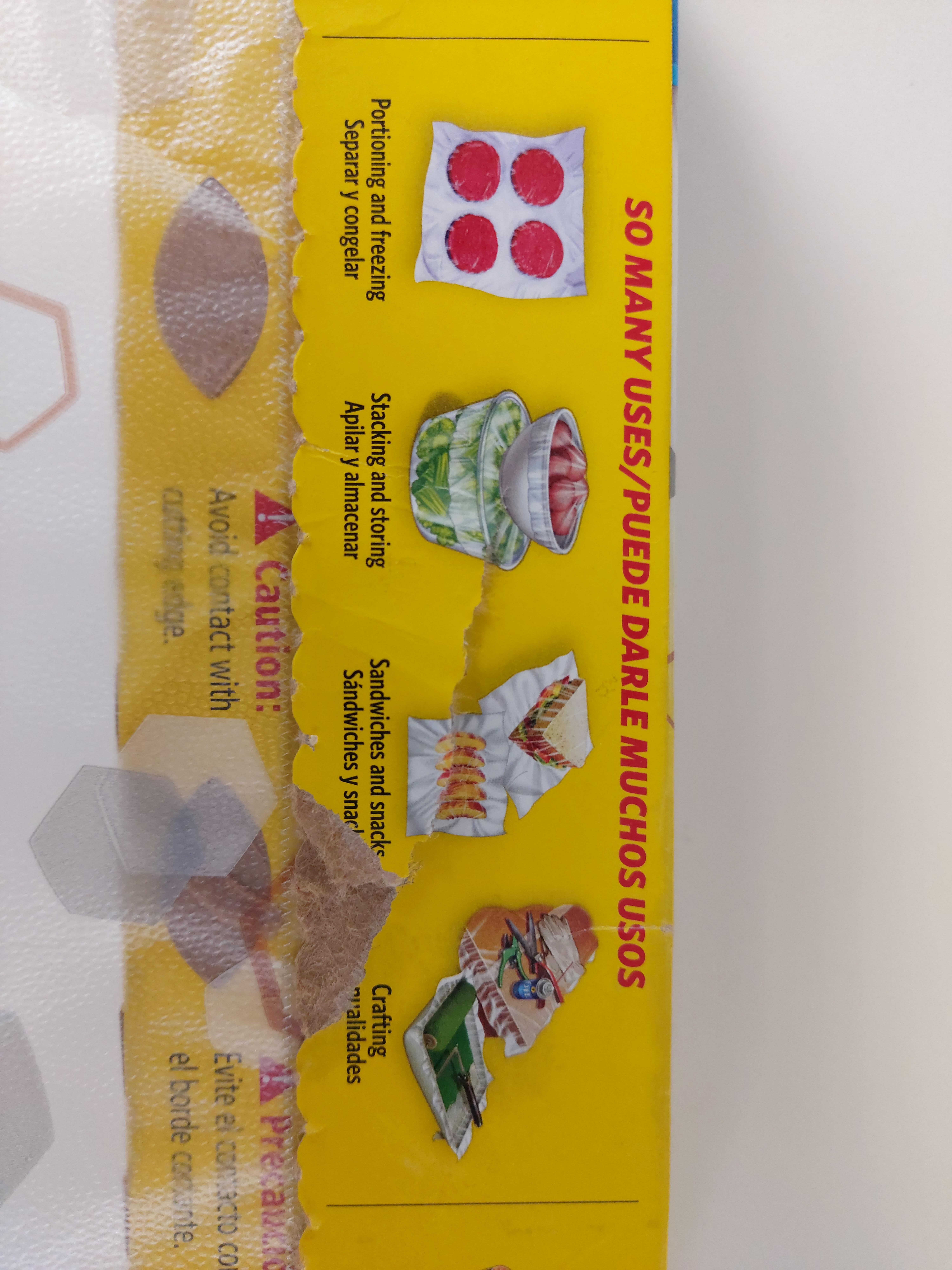 다른 랩들과 똑같이 매직 랩도 뽑아서 사용을 합니다. 여기서 사용 꿀팁은 매직 랩 케이스 윗부분을 여유있게 공간을 만들어 주는 것입니다. 이렇게 하지 않으면 매직 랩 안쪽 면이 끈끈하기 때문에 꺼낼 때 잘 나오지 않습니다. 그래서 살짝 위에 공간을 만들어주고 아래 사진처럼 뽑아줍니다.
