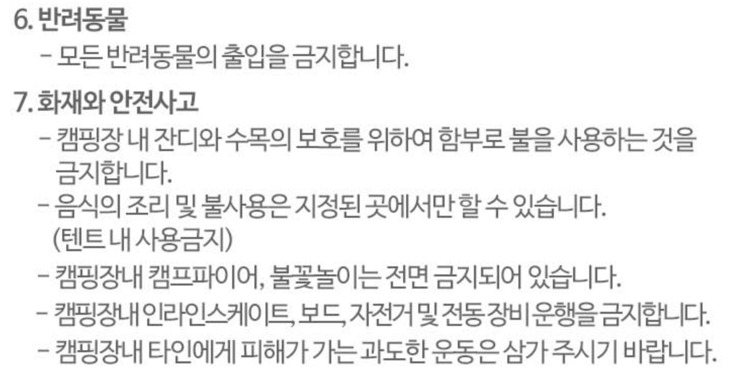 불멍 또한 불가합니다. 이 부분이 가장 아쉬웠지만, 불멍만 못하고 숯으로 조리하는 건 가능합니다. 그리고, 천왕산 가족캠핑장은 관리인 분들이 매너타임 관리도 잘해주셔서 편히 힐링 위주로 캠핑하는 저에게는 만족스러웠습니다.