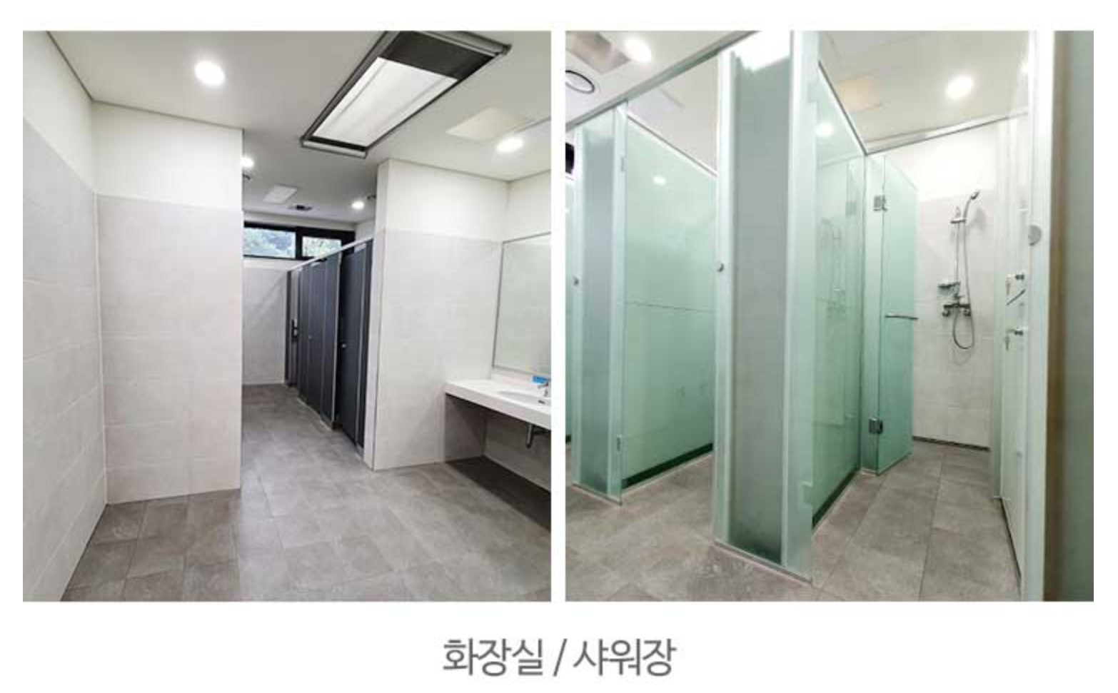 1박 2일 캠핑의 경우에는 샤워장을 이용안하고 퇴실하는 분들이 많은데, 2박 이상 할 경우에는 샤워실을 사용하곤 합니다. 보통 캠핑장은 샤워실이 구식이거나, 음식물 버리는 곳과 함께 있다던지 화장실 안에 단순히 칸막이 하나만 있는 캠핑장이 많습니다. 하지만, 천왕산 가족캠핑장에는 화장실 안에 별도의 샤워실을 완전히 분리하여 하나의 방으로 운영하고 있었습니다.