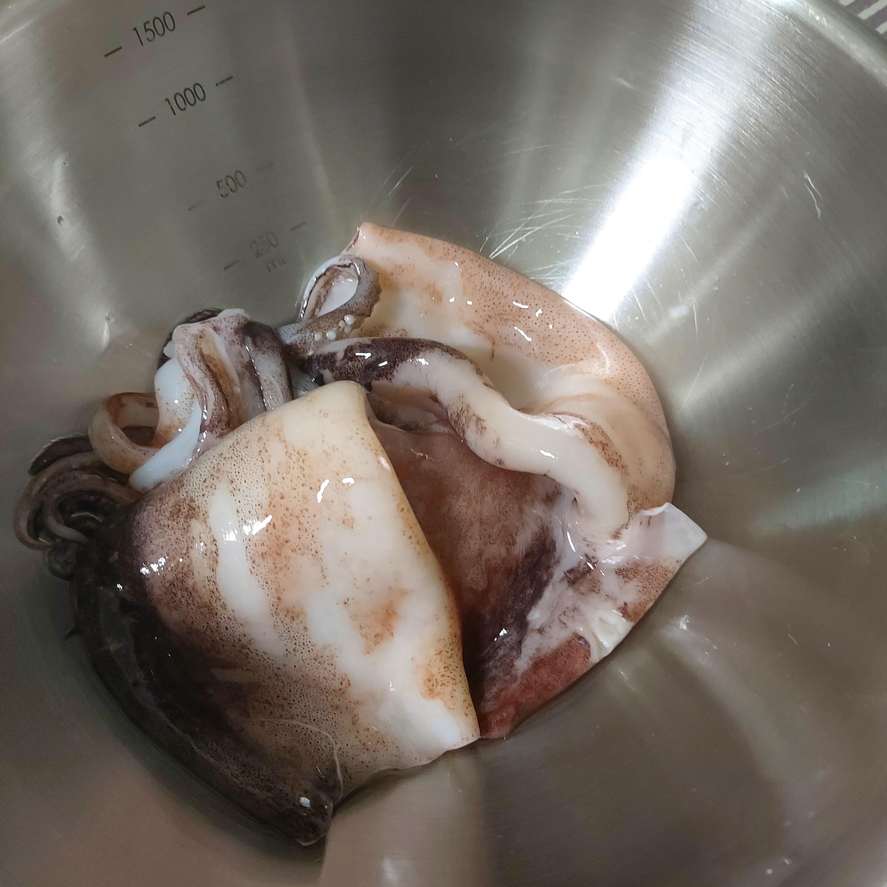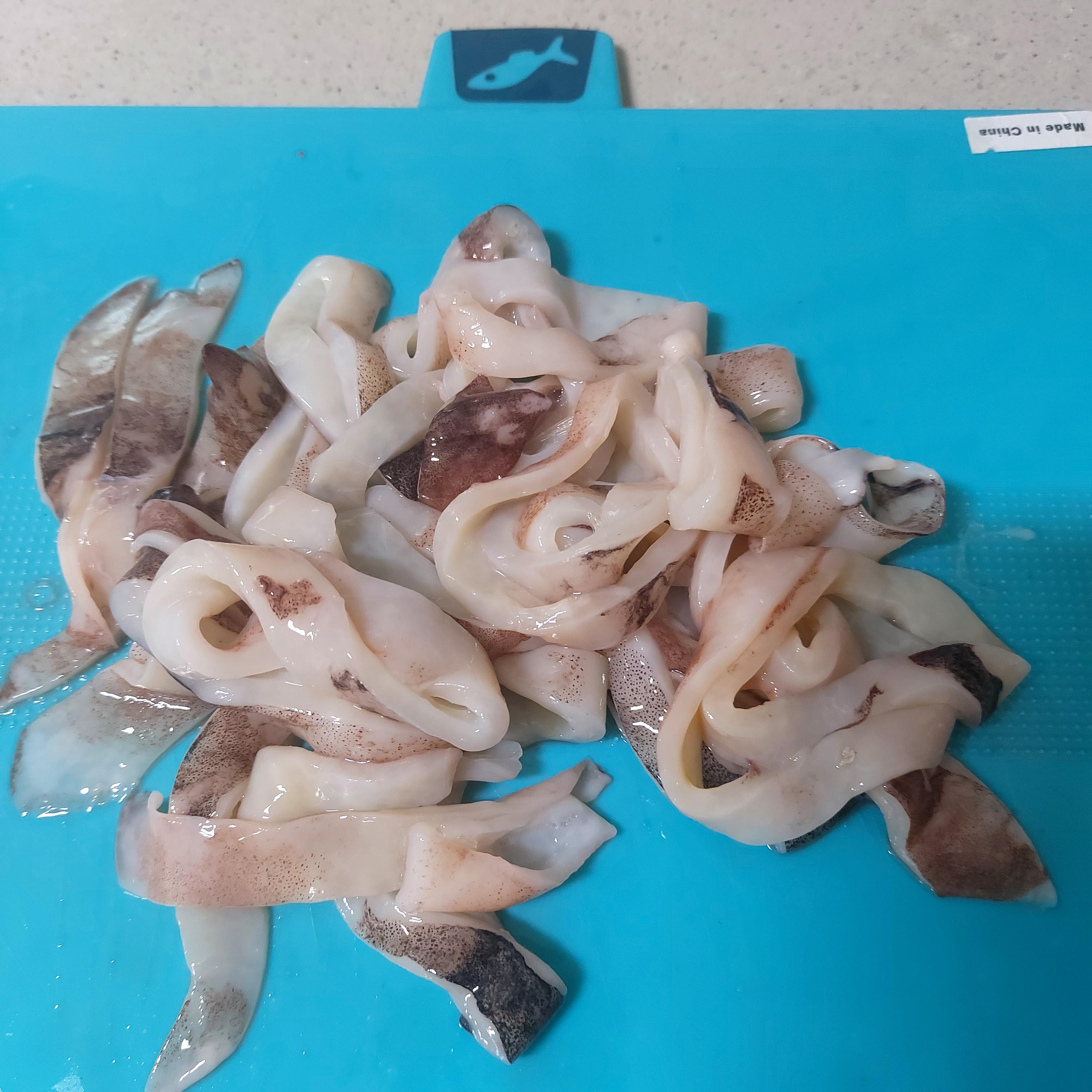오징어를 먹기좋게 잘라줍니다.