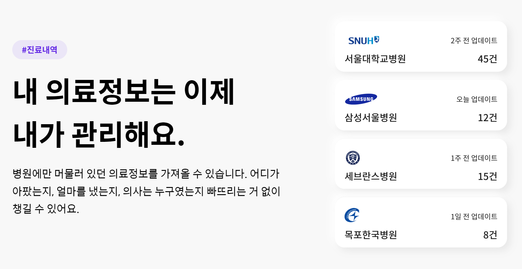 메디블록과 협업되어 있는 병원의 데이터를 이제 사용자들이 볼 수 있게 됩니다. 더 나아가 병원끼리 데이터 공유가 되면 좋겠지만 법 관련 문제가 있어 바로 해결되지는 않겠지만 지금 기술 기반으로 충분히 풀어나갈 수 있는 상황이고 그 중심에 메디블록이 있는 상황입니다.