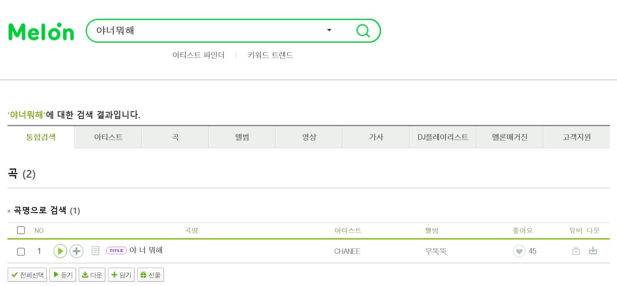 기다림의 시간 끝에 멜론에서 노래가 검색이 됩니다.
