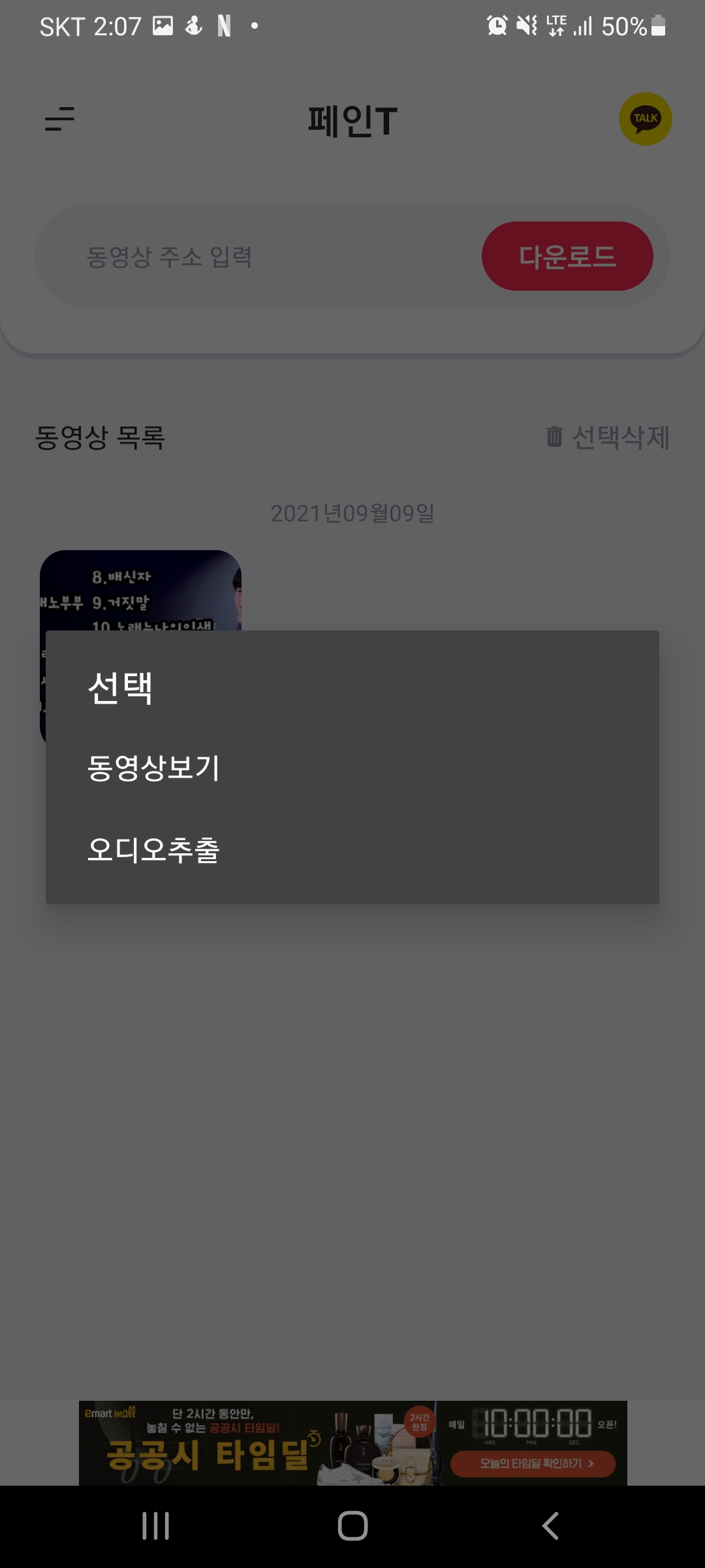 유튜브에서 검색한 임영웅 노래모음 영상을 다운 받기위해 어플이 필요합니다.
