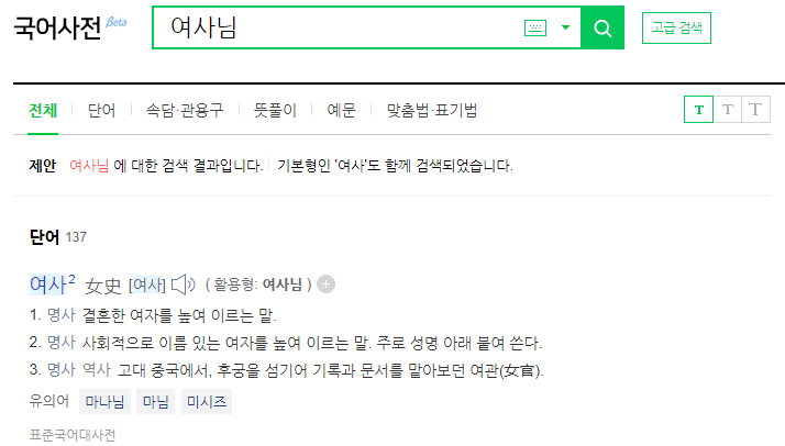 나이가 어릴수록 사모님, 여사님이라는 호칭을 사용할 일이 별로 없습니다. 또래 친구들 위주로 많이 보기 때문인데요. 나이가 어리더라도 주변 상황이 어른들과 함께해야 하는 상황이라면 호칭에 대해서 한번쯤 고민해봤을 것입니다. 어른들이 먼저 편하게 형수님이라고 부르면 된다고 알려주는 경우도 있지만, 그렇지 않은 경우에는 직접 물어보거나 알아서 해야 하는데요. 단어 뜻을 한번 보겠습니다.