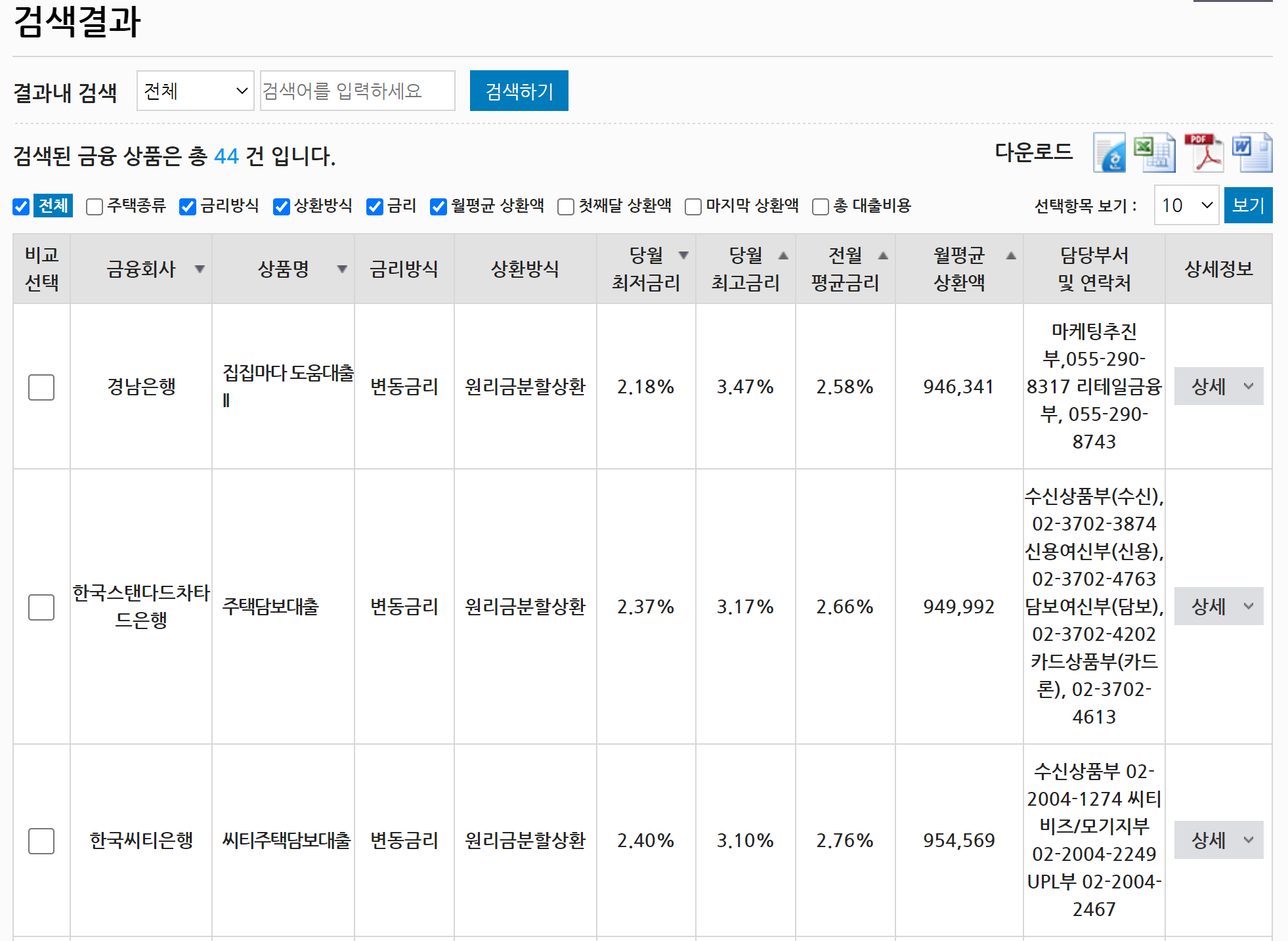 상세보기 펼치기 버튼을 눌러보면, 어디에 연락을 해야 하는지 연락처도 확인 가능하오니 개인의 가정경제에 맞는 상품을 찾아 금융사에 연락하여 문의해보시면 되겠습니다.