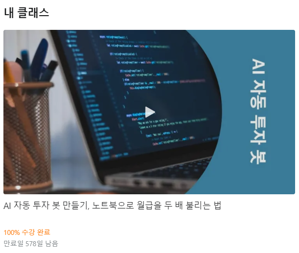 ※저는 매일 쉬지 않고 3시간 이상 투자하여 강의 106개 모두 수강하였습니다.