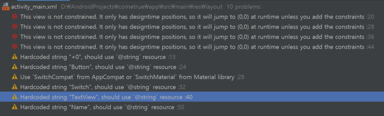 다른 일들을 하느라 독학으로 앱 만들기 프로젝트가 잠시 중단되었습니다. 이제는 1달 안에 앱 출시를 목표로 하여 독학으로 앱 만들기 시리즈를 마무리하도록 하겠습니다. 최근 마지막 포스팅은 아직 배우지는 않았지만 스스로 이것저것 만져보며 시행착오를 겪는 연습을 하였습니다. 이번에는 이것저것 만지다가 발생한 에러 문구들은 어떤 건지 에러 원인을 찾아보는 시간을 가져보겠습니다.