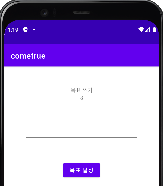 목표 달성을 버튼을 눌렀을 때, EditText에 입력된 내용과 동일한지 확인하여 잠금해제가 되도록 해야 하는데 이루려고 하는 목표를 등록하고 볼 수 있는 화면이 필요하다. 이 화면은 예전에 그려둔 화면을 XML 코드로만 옮겨놓고 다음 포스팅에서 이어가 보도록 한다.