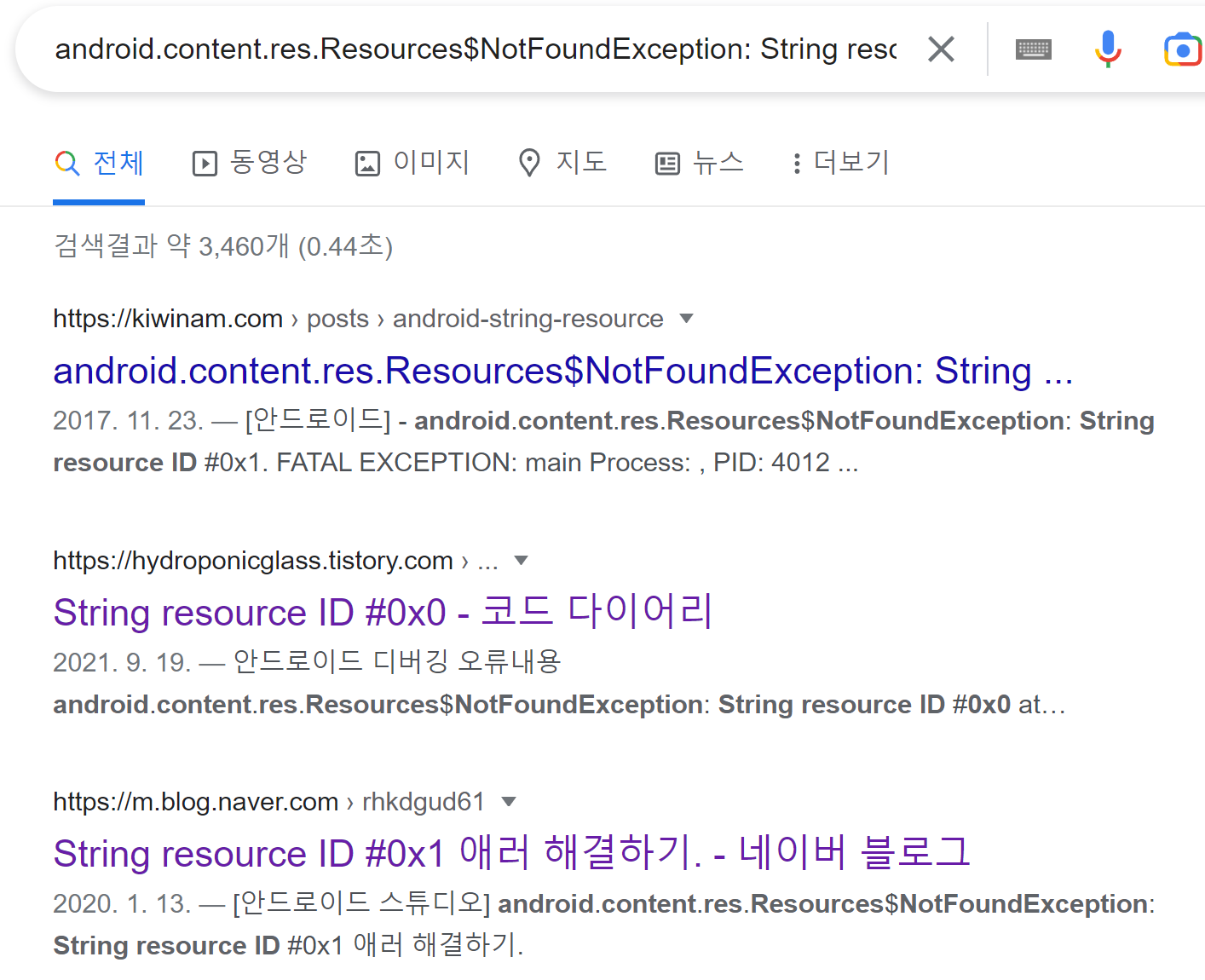 android.content.res.Resources$NotFoundException: String resource ID #0x0