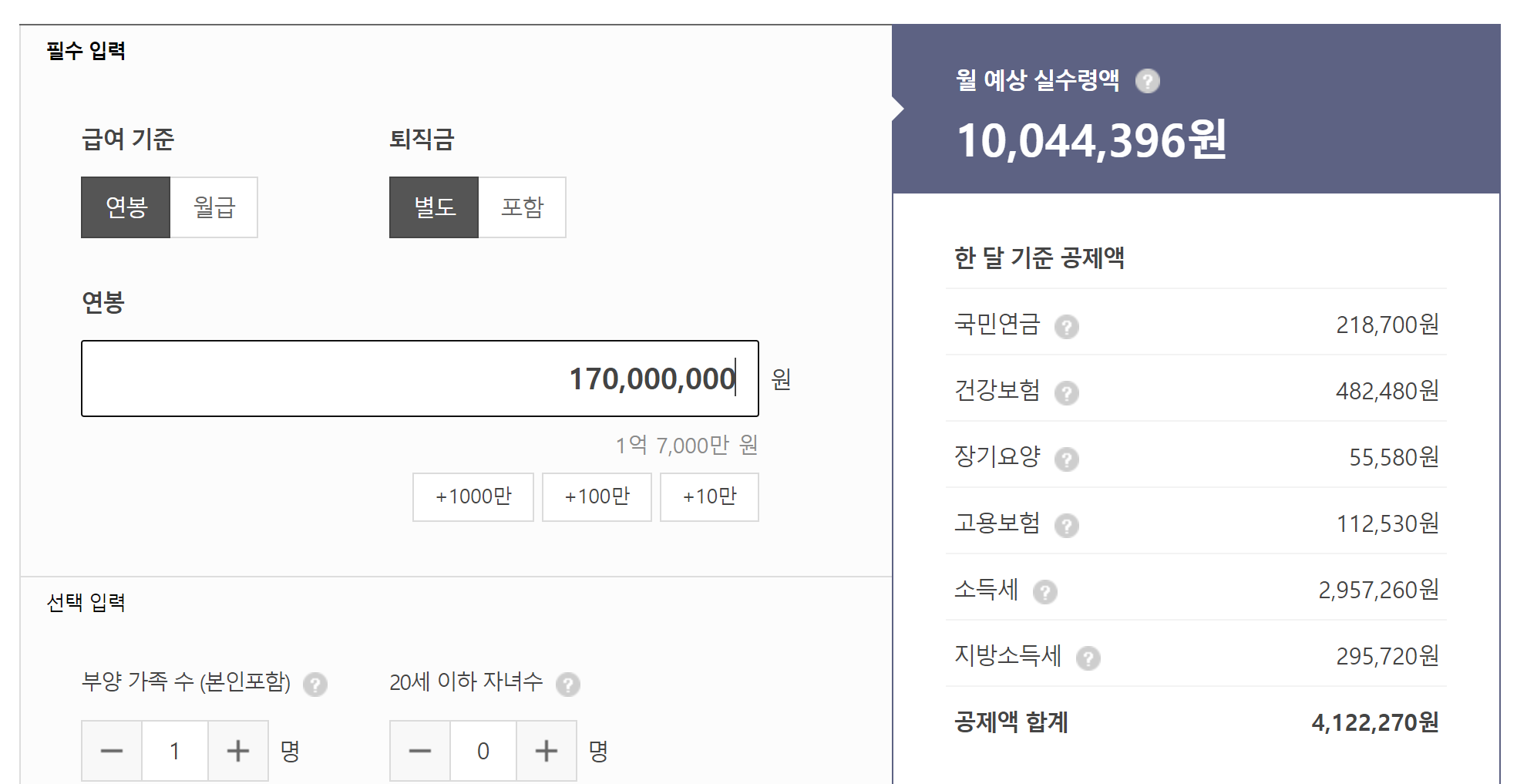 월급 천만원의 로망이 이루어진다고 계산되어 나옵니다.