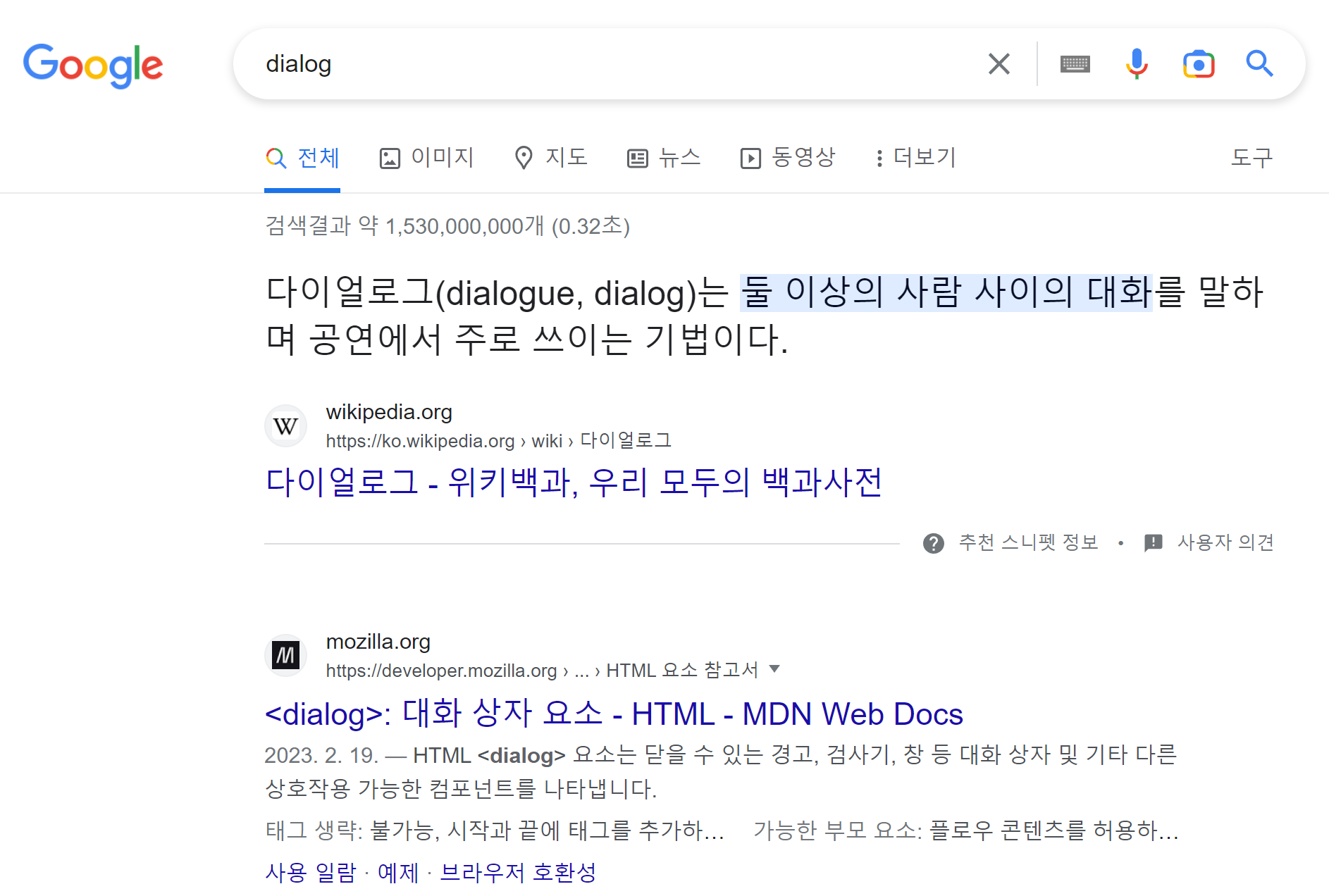 ※구글에 dialog를 검색해서 의미를 보면 이해에 도움이 된다.