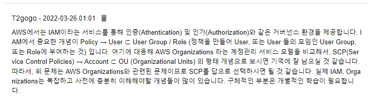 정답 확인. 정답. 추가로 해당 사이트에 의견 중에 정리가 잘 되어 있는 글이 있는거 같아서 그것도 캡처하였다.