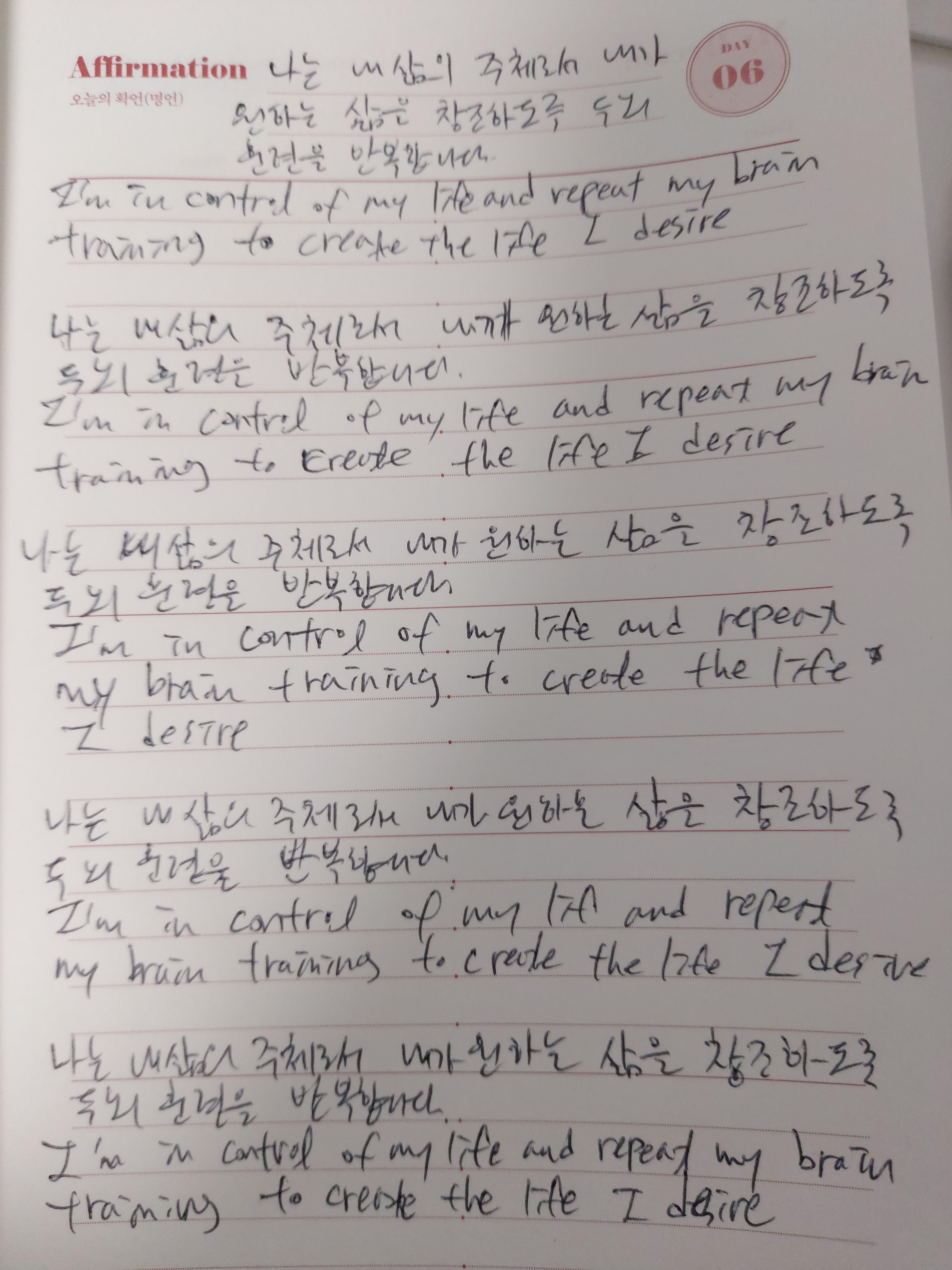 나는 내 삶의 주체로서 내가 원하는 삶을 창조하도록 두뇌 훈련을 반복합니다.