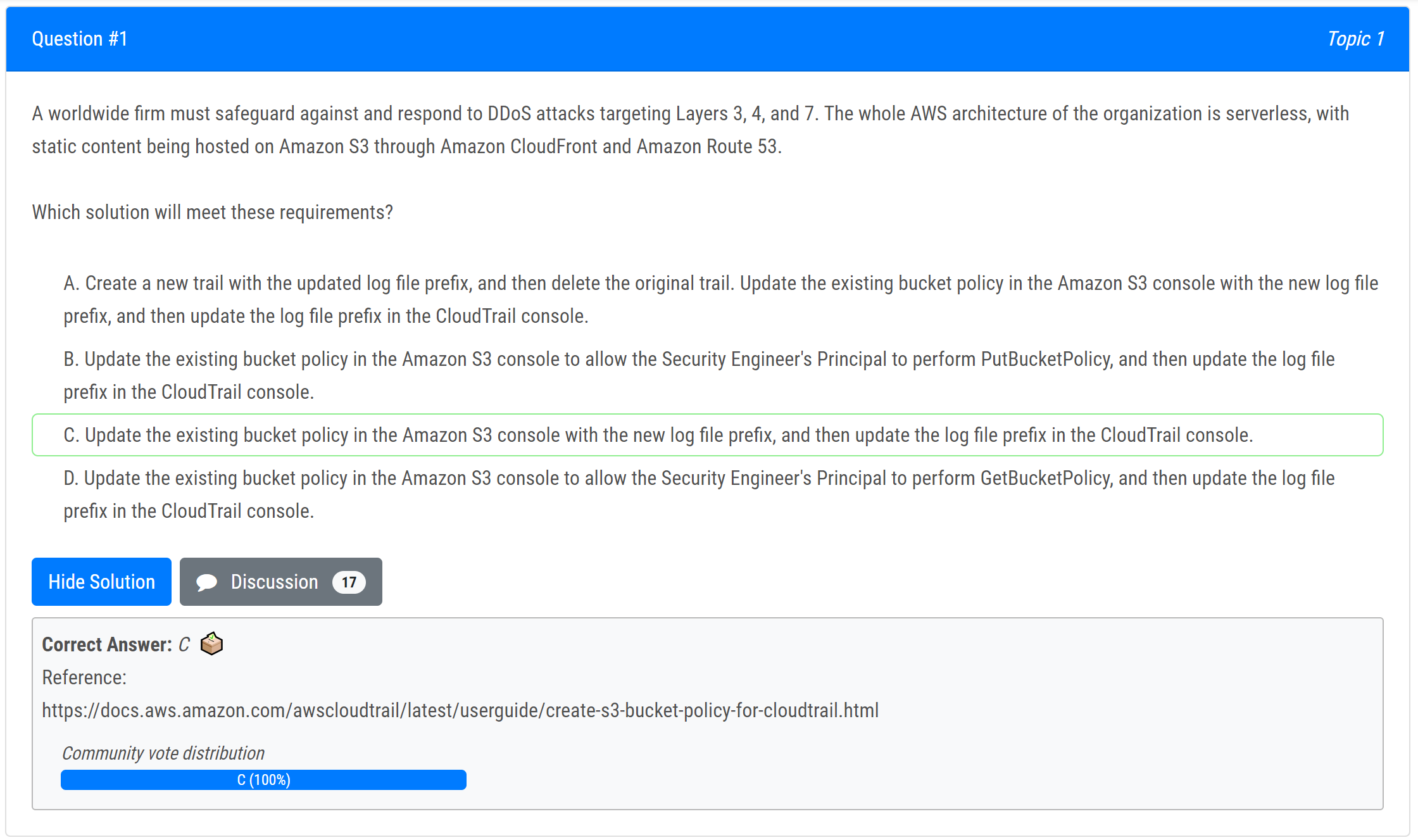 덤프 사이트는 해외 사이트가 유명하고, 커뮤니티처럼 운영되기 때문에 문제에 대한 답이 100% 맞다고 믿지 마시고 다른 사람들의 댓글들과 일치하는지 이유가 타당한지를 보시면 좋습니다.