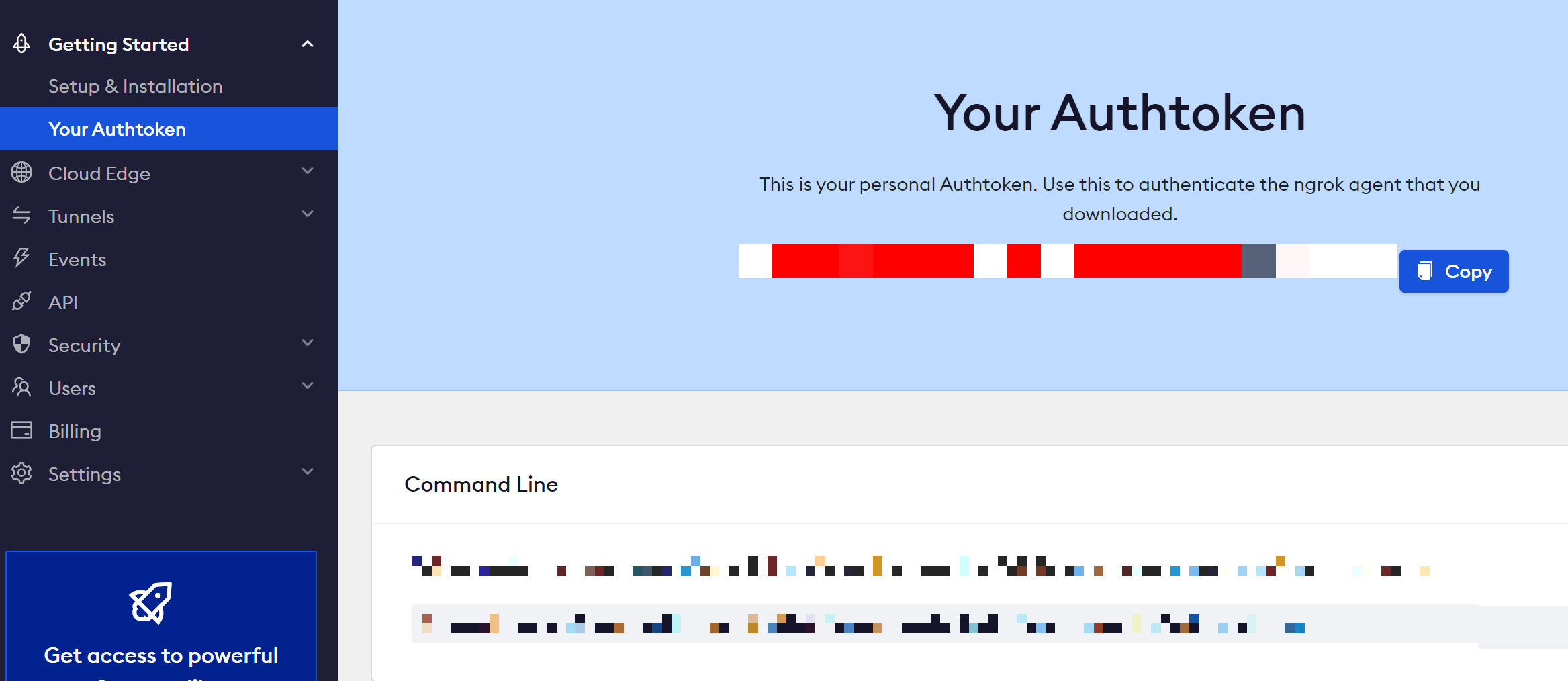 Install ngrok via Homebrew $ brew install ngrok/ngrok/ngrok Download ZIP file Intel (AMD64) Apple Silicon (ARM64) Then unzip ngrok from the terminal $ Install ngrok via Chocolatey $ choco install ngrok Download ZIP file Windows (64-bit) Windows (32-bit) Do